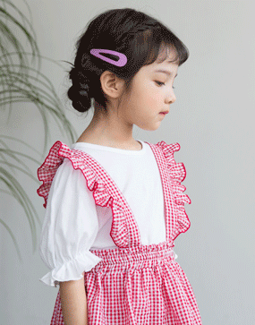같이 코디되어 있던 핑크하트 티셔츠와 구매했어요 앞머리를 기