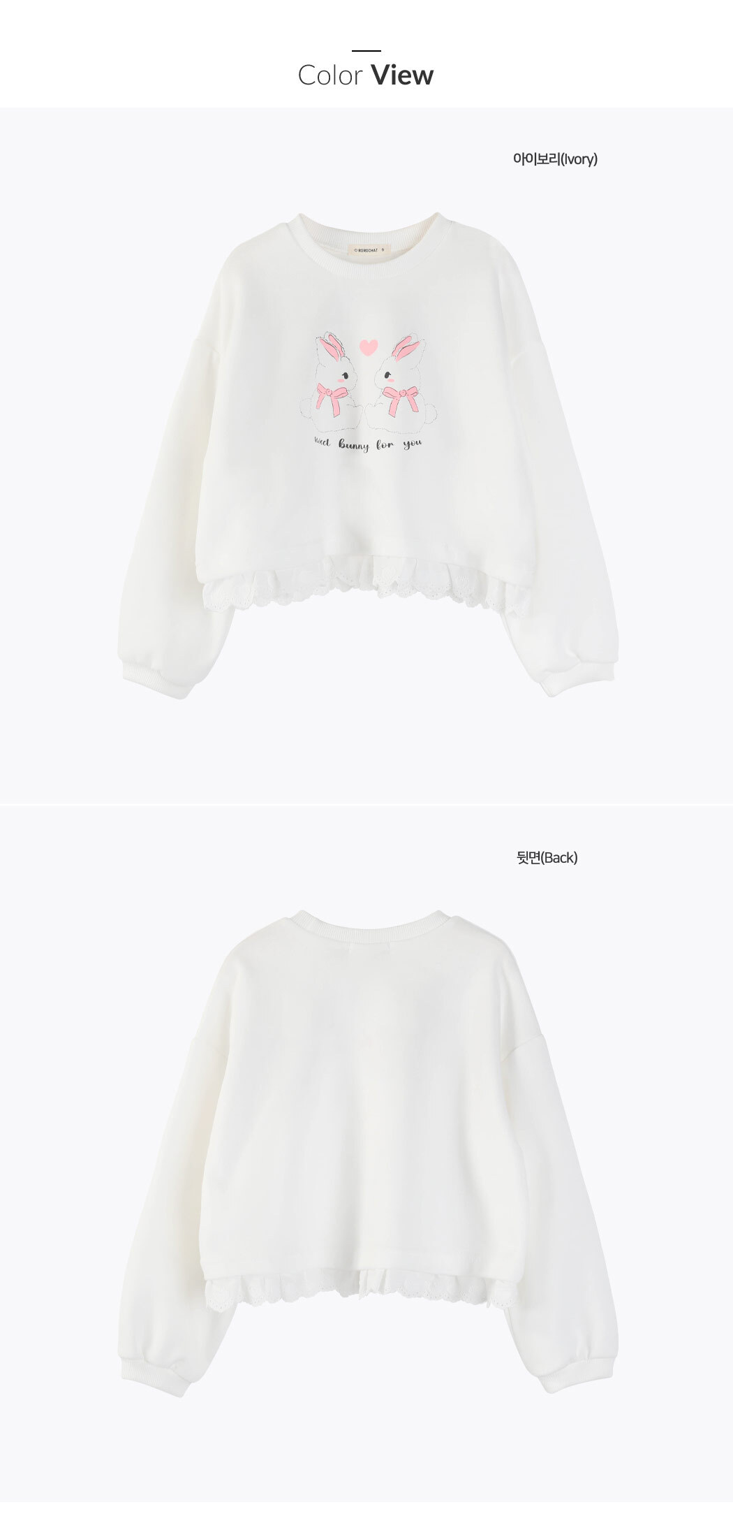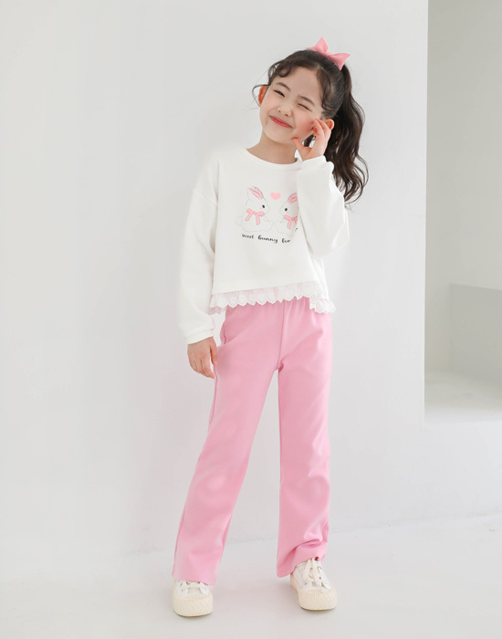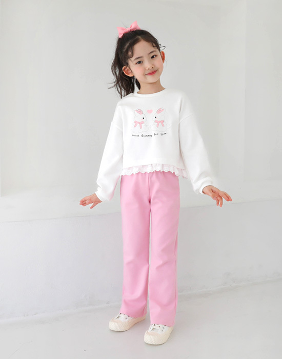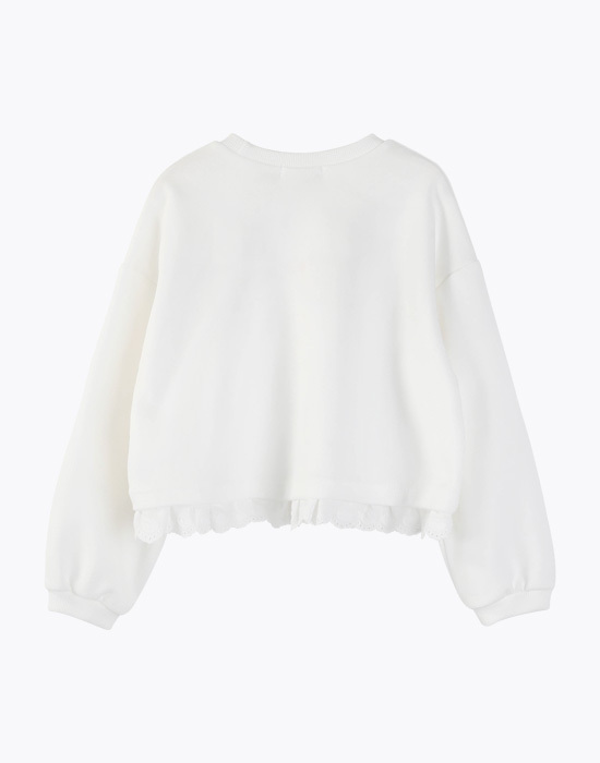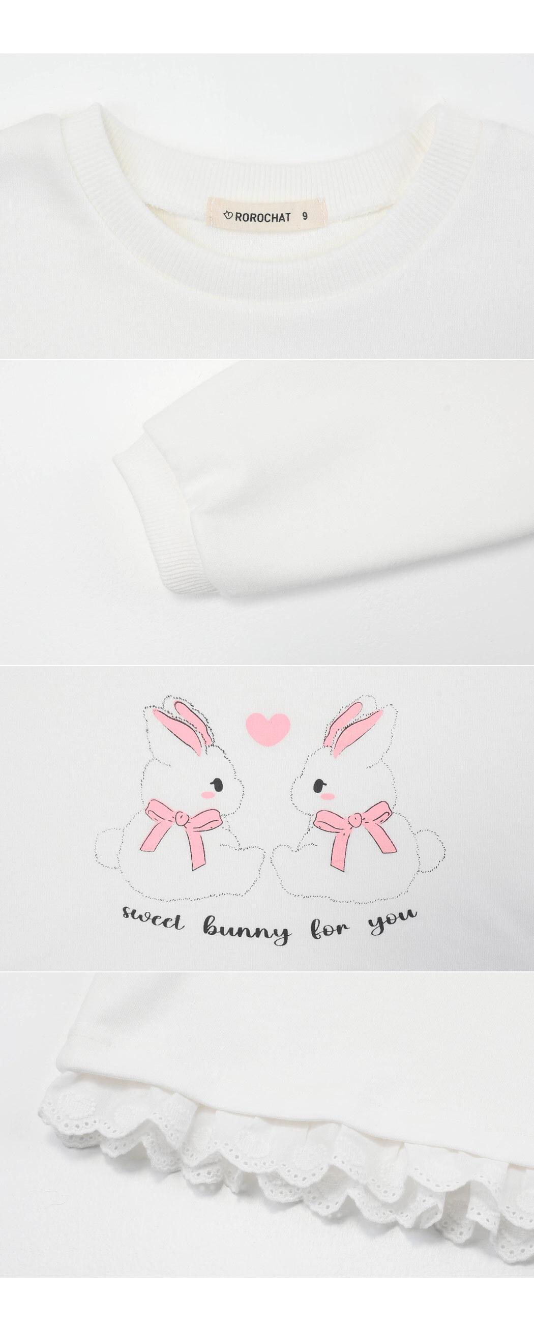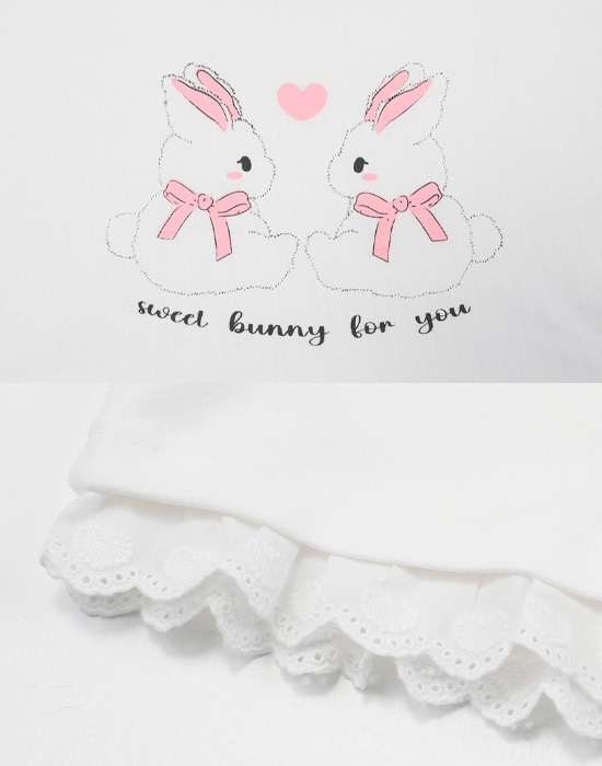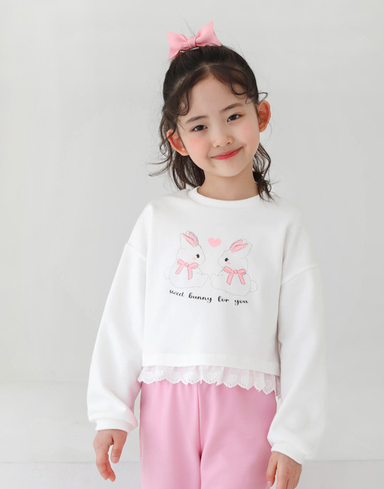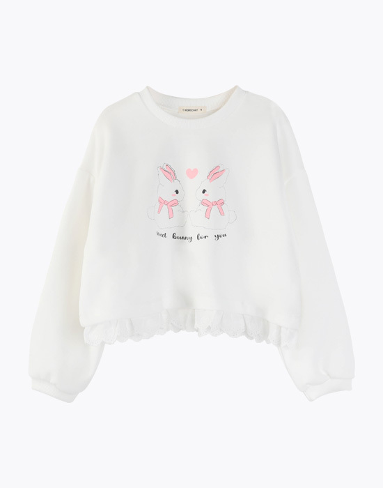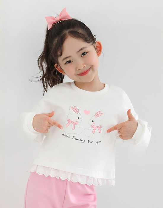 귀여운 토끼 프린팅에 밑단 레이스 디테일이 있는 맨투맨