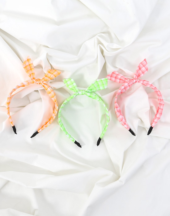 모던한 체크와 네온컬러가 예쁜 헤어밴드! 데일리로 활용하기 좋아요 :D