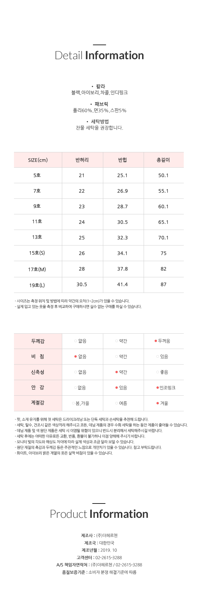 하단 권장사이즈표를 참고해주세요